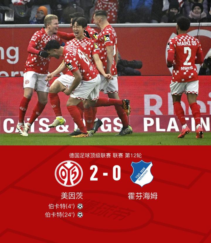 在德甲联赛第12轮的比赛中,美因茨坐镇主场迎战霍芬海姆。本场比赛的焦点人物之一就是伯卡特,这位年轻球员近期状态火热,凭借出色的个人能力和出色的进球效率,成为美因茨队的进攻利器。开场仅仅4分钟,伯卡特就展现出色,凭借李在城的精妙助攻打入一球,为球队取得领先。这个进球让美因茨士气大振,同时也为伯卡特在比赛中找到了节奏。